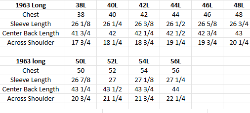 Below is the Size Chart for Long (tall) Sizes ONLY: